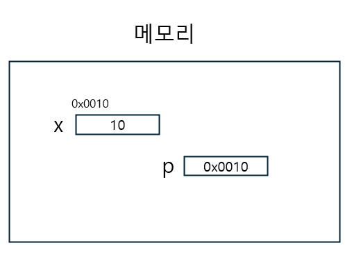 - *p = 10; → p가 가리키는 위치에 10을 저장 ⇒ x의 값이 10으로 변경