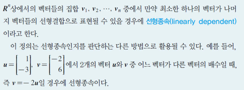 3. 벡터공간에서의 주요 논제 중의 하나인 선형독립과 선형종속의 개념과 차이점을 예제들을 통하여 학습함