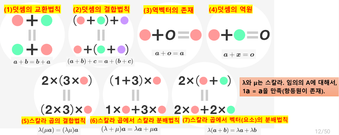 (2_2) 덧셈(합)과 스칼라 곱이 다음 7개 조건을 만족해야 한다.