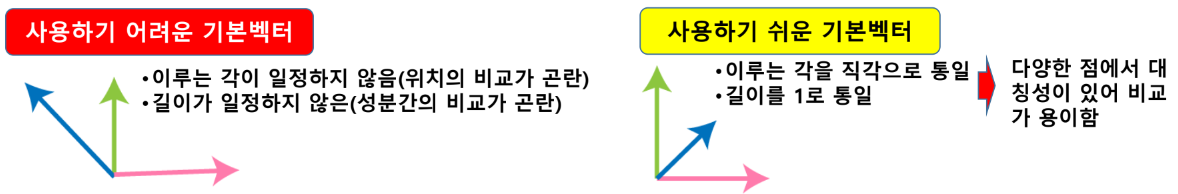 => 이러한 벡터 a->, b-> , c-> 를 기본벡터라고 부른다.