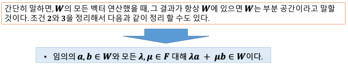 2. 부분공간의 성질들을 예를 들어 고찰함